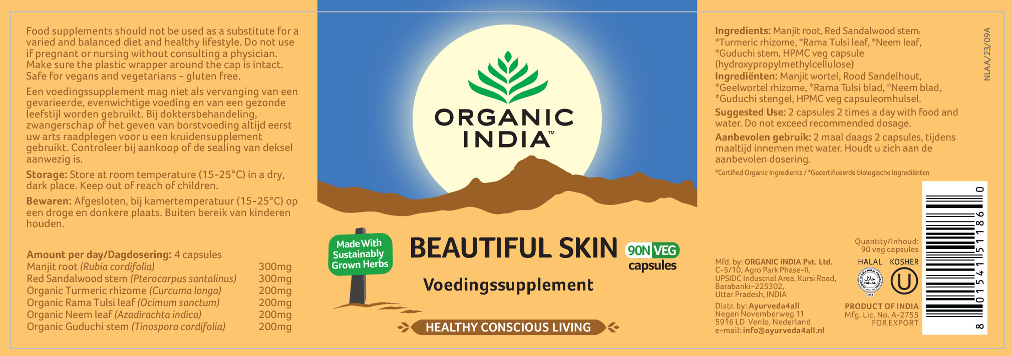 Deze formule helpt het bloed te zuiveren en het endocriene systeem meer in balans te brengen. Beautiful Skin bestaat uit de volgende kruiden: Manjit wortel, Rood Sandelhout, Geelwortel, Rama Tulsi blad, Neem blad, Guduchi stengel.