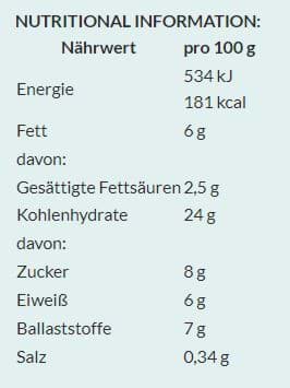 olijfolie*, dadels*, sultana’s*, steenzout, tomatenvlokken*, broccoli*,