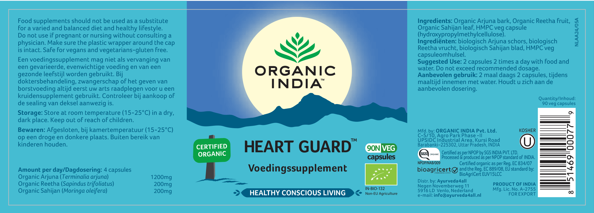 Heart Guard bevat biologische kruiden die geoogst zijn uit de jungles van Centraal India, natuurlijk met het volledige respect voor onze moeder Aarde.