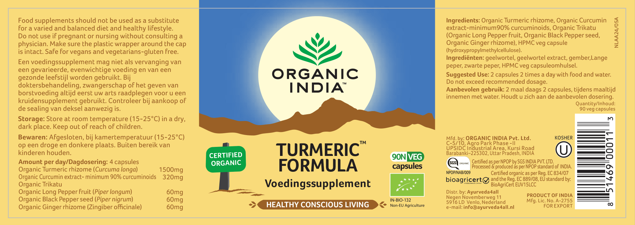 De kurkuma is verrijkt met curcuminoïden extract en biologische Trikatu. De 100% biologische Trikatu in deze Turmeric Formula zorgt voor een betere en snellere opname door het lichaam. De kracht van de Turmeric Formula zit hem in de combinatie van het hele kruid met het curcumine extract en als toevoeging de Trikatu voor een betere opname. De hoge concentratie curcumine is nodig voor de heilzame werking van het kruid.