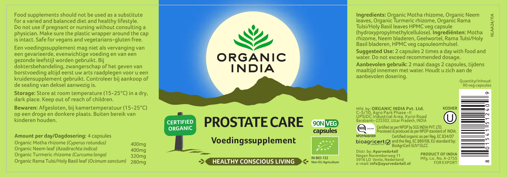 Prostate Care bestaat uit de volgende biologische ayurvedische kruiden;