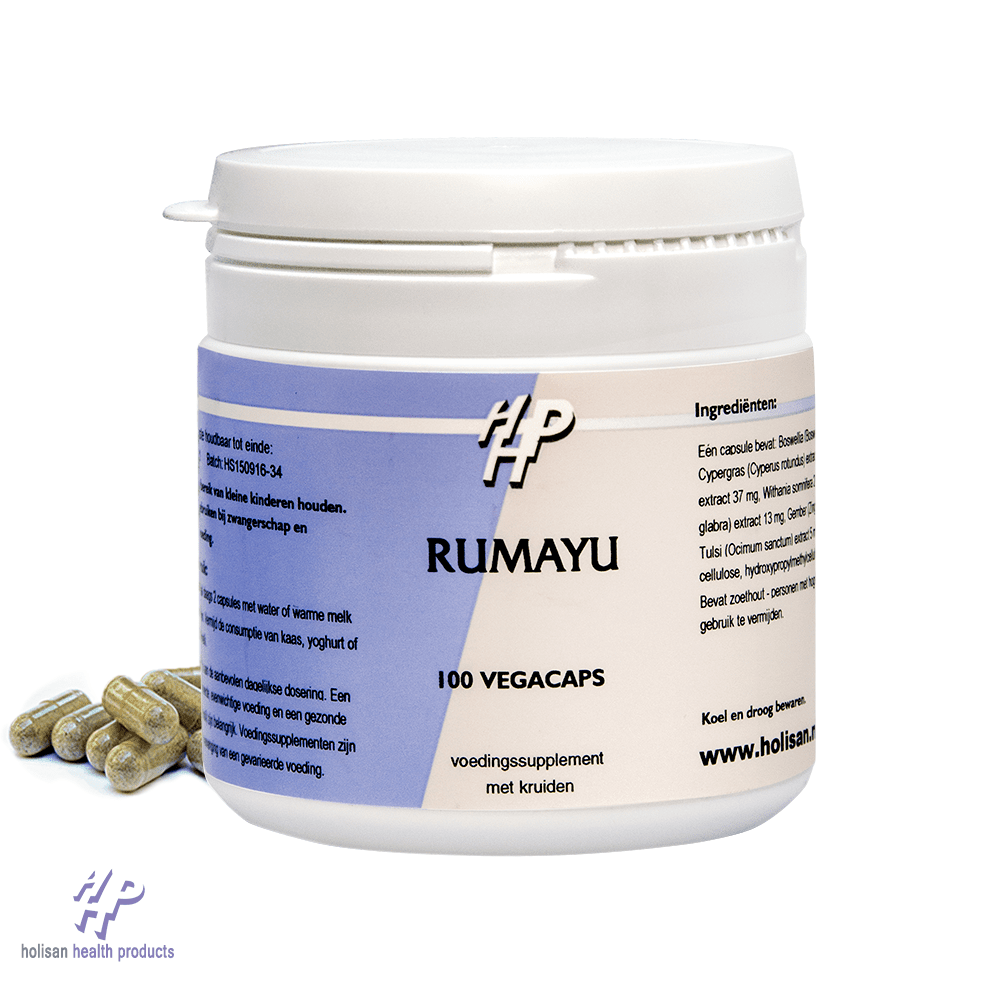 Een verpakking Rumayu bevat 100 plantaardige capsules.