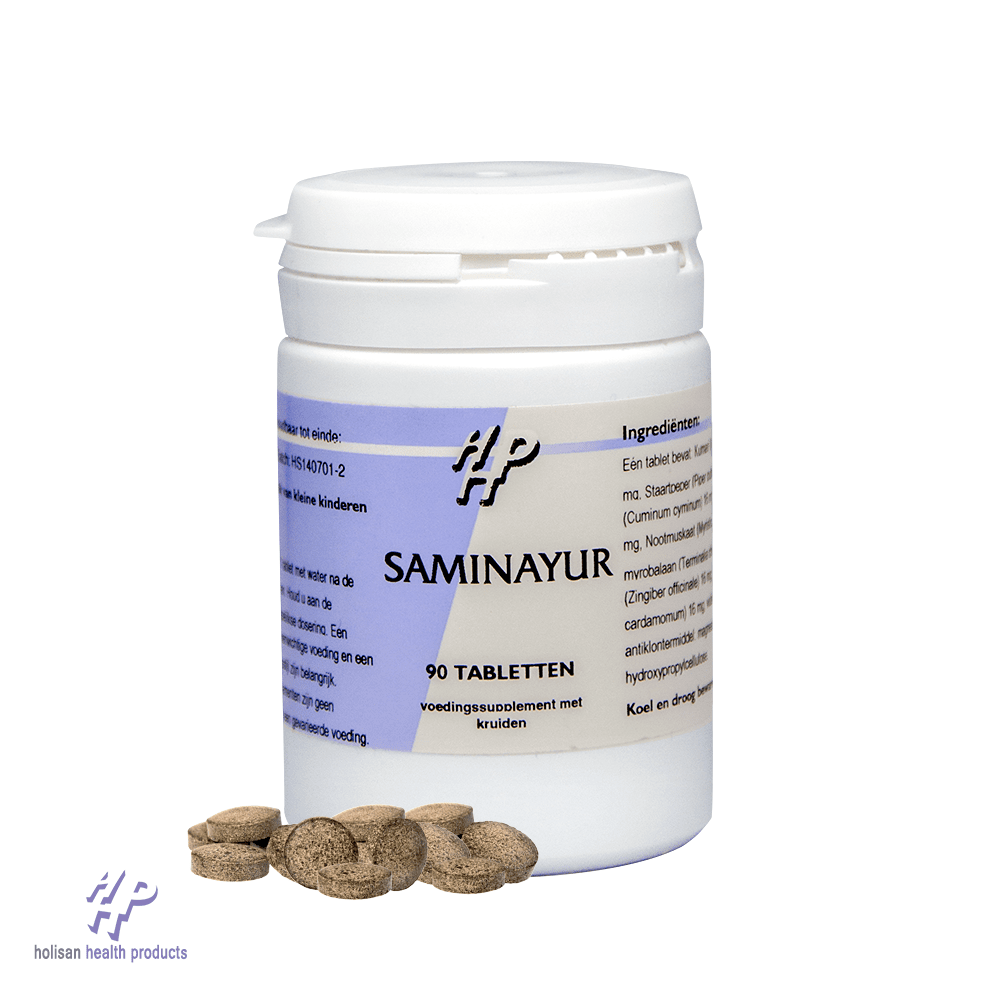 Saminayur is traditionele Ayurvedische formulemet een positieveinvloed op de spijsvertering. Saminayur ondersteunt de werking van spijsverteringsenzymen en verbetert zo niet alleen de vertering, maar ook de opname van voedingsstoffen.