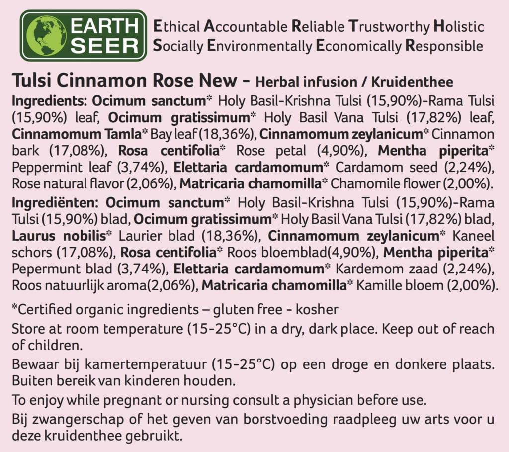 Deze zeer verfijnde Tulsi melange zorgt voor harmonie en is heilzaam voor lichaam en geest. De Tulsi Cinnamon Rose, met een vleugje heerlijk zoet natuurlijk aroma, doet zo goed!