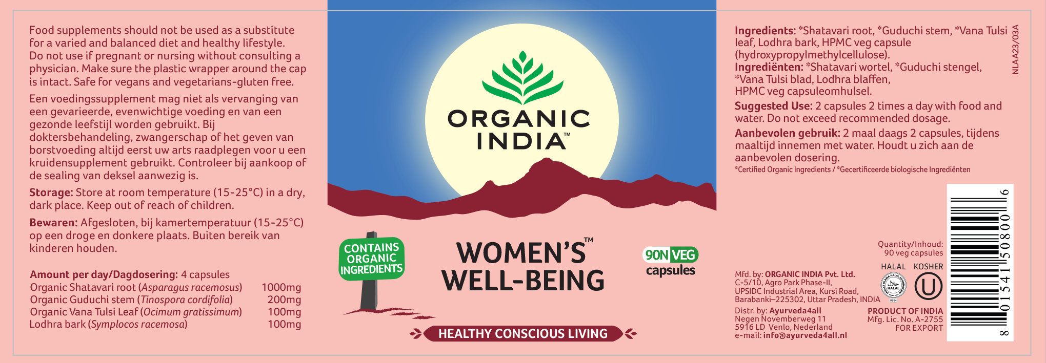 Volgens de laatste nieuwe inzichten heeft Organic India de aanbevolen dosering aangepast. De therapeutische dosering is dagelijks 2x 2 capsules.